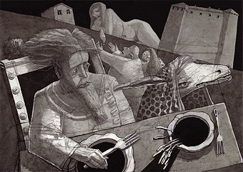 Sowohl die Zeichnungen wie die Druckgraphik sind von narrativem Inhalt und der Bezug seiner Werke zu Symbolen, Mythen und Archetypen ist nur eine logische Folgerung. Die bildende Kunst hat von jeher aus dem Mythos geschöpft, denn gerade hier wird von dem komplexen Beziehungsgeflecht zwischen dem Selbst und dem Anderen erzählt, von der Schönheit und Unberechenbarkeit des Kosmos'.
